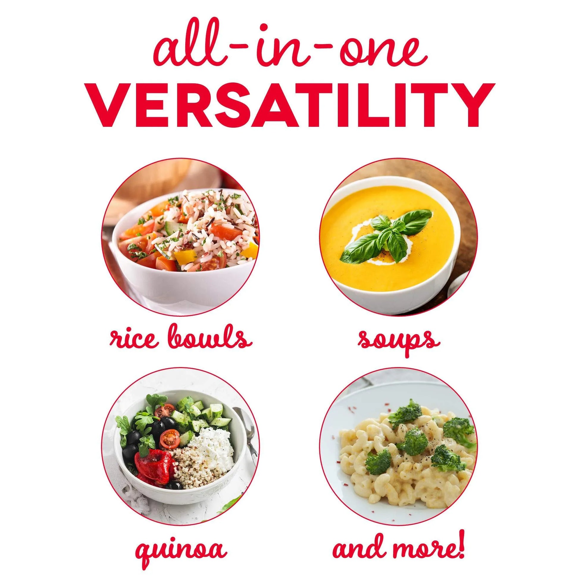 - MORE THAN RICE: Oatmeal, stew, soup, quinoa, rice, and pasta. The 2-cup capacity allows for healthier portion control, or individual, quick and easy breakfast, lunch, dinner, snacks, or sides.
