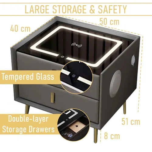 - ♪The bedside table with a charging station: This is a new generation of bedside table with a USB port and a wireless charging station, which makes it easier for you to charge. The bedside table is very suitable for placed in the living room or bedroom. His existence will make your family life more comfortable. (Note: Only some mobile phones can be used in wireless charging stations)
