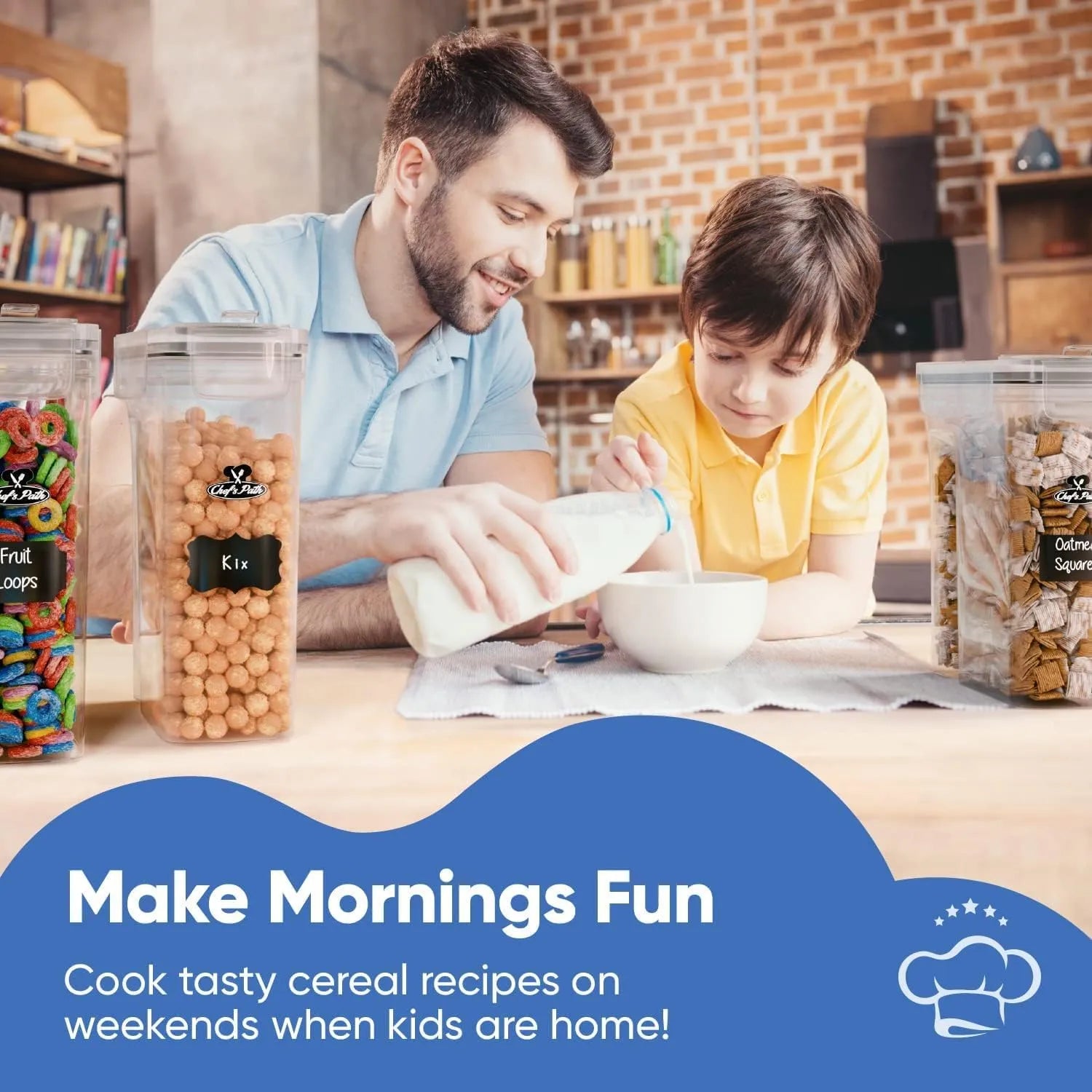 Chef's Path Cereal Containers Storage Set, Airtight Food Storage Containers, Kitchen & Pantry Organization, 8 Labels, Spoon Set & Pen, Great for Flour - BPA-Free Dispenser Keepers (135.2oz)