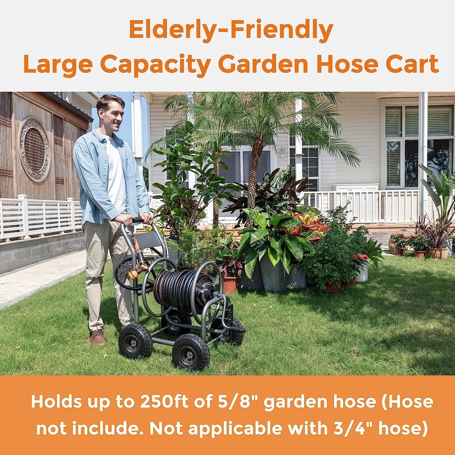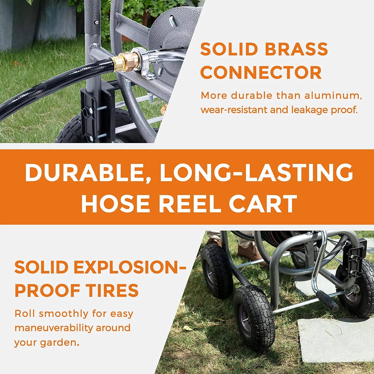 Hose Reel Cart, Hose Reel Cart with Wheels Heavy Duty, Industrial Hose Reels for Outside, 250-Feet of 5/8" Hose Capacity, Hose Guide Installed