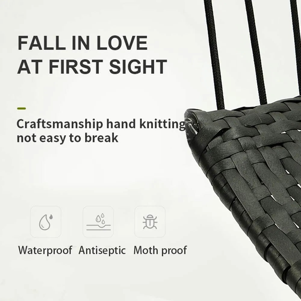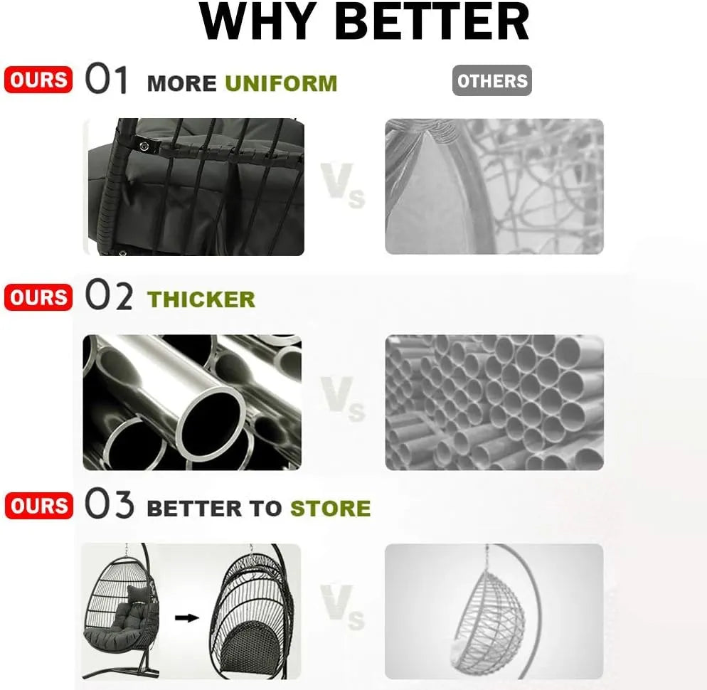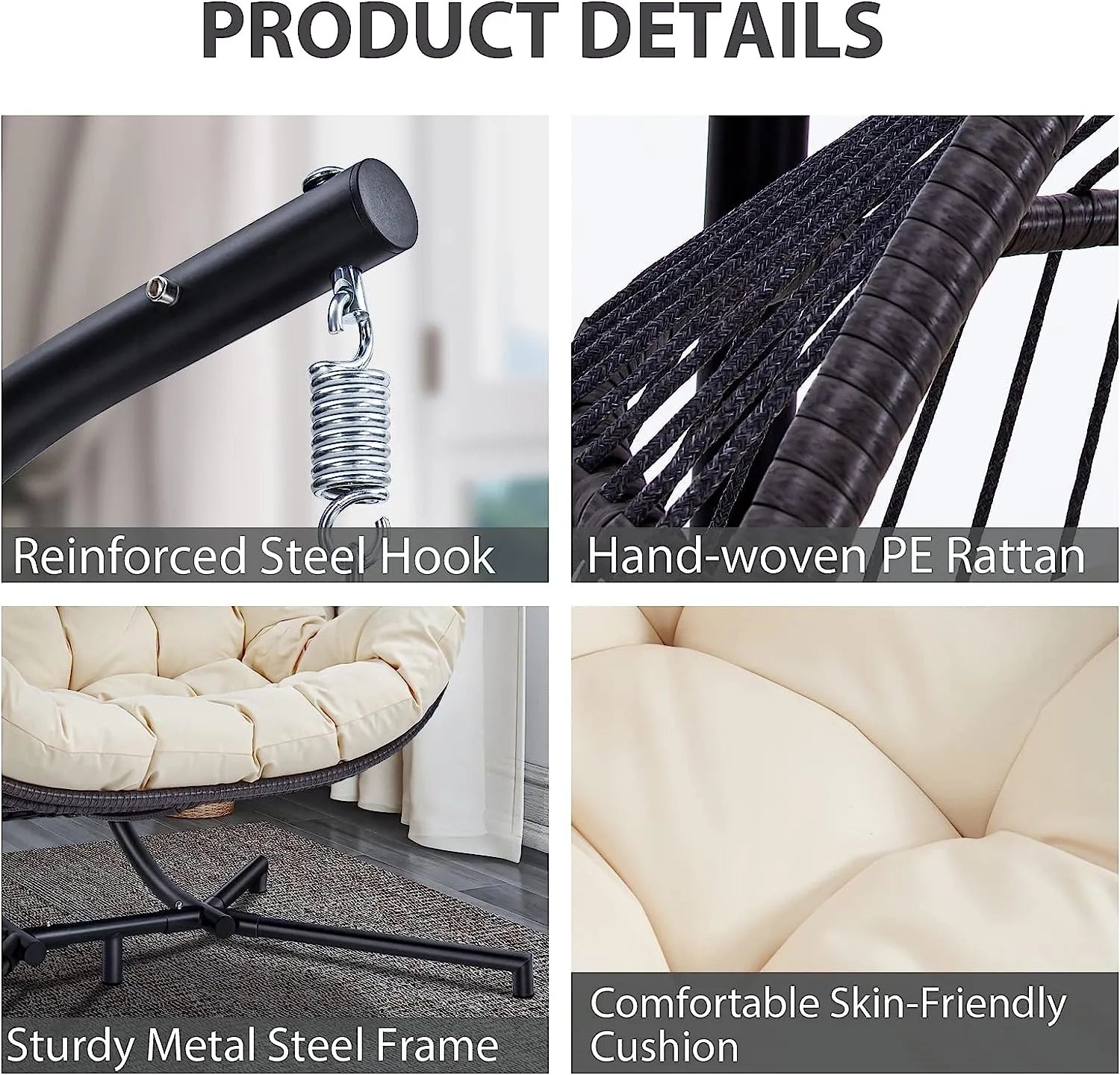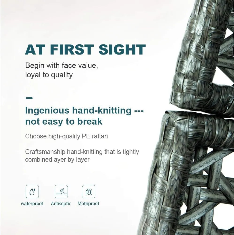 - FALL IN LOVE AT FIRST SIGHT - Featuring a sturdy powder-coated steel frame, the seat of this outdoor patio swing chair is woven with luxurious synthetic rattan creating a stylish and supportive place to rest.