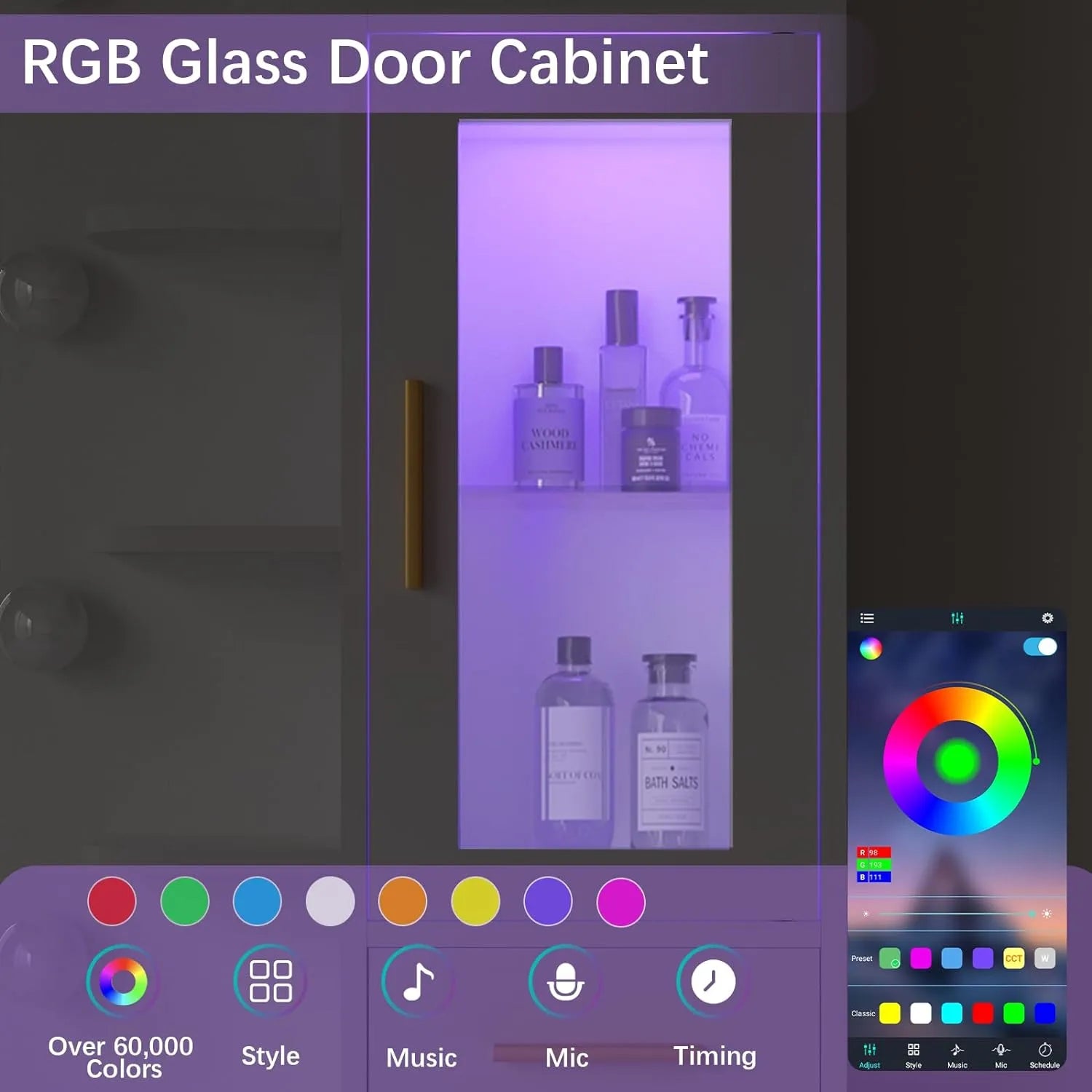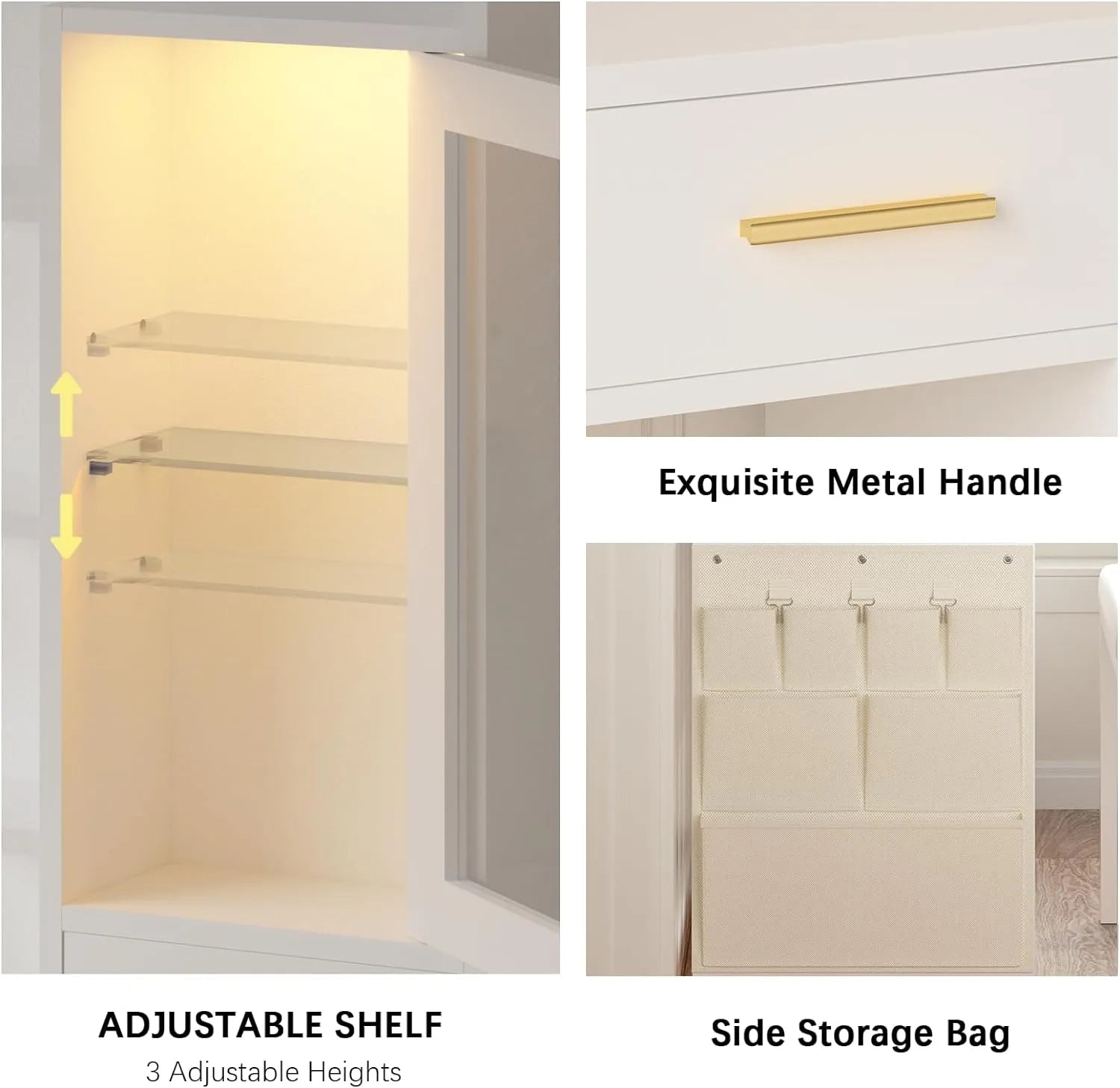 🔥$100 off orders over $300🔥- 【Vanity Desk with RGB LED Light】This vanity is equipped with a cabinet with height-adjustable laminates and an RGB lighting system, which can be controlled via APP or a switch. With over 60,000 static colors available and multiple lighting modes, the system can synchronize to music for a stunning visual experience while you relax or entertain.