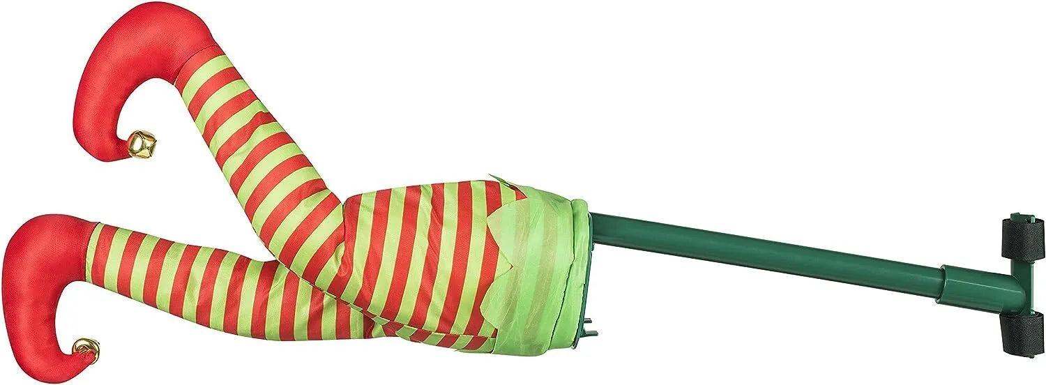- EASY SETUP: Elf kickers include an adjustable arm to ensure full display. Simply attach to a tree using the included arm, clamp, and velcro strap, or lean against a wall to easily display