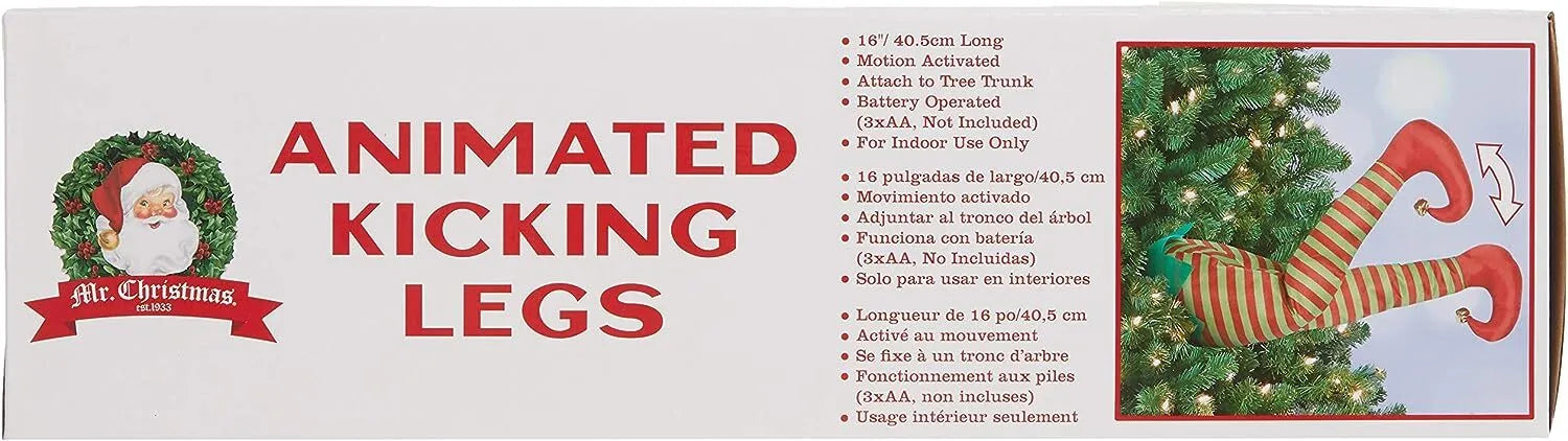 - ANIMATED CHRISTMAS DECORATION: Kick up your Holiday spirit with the Animated Elf Kickers by Mr. Christmas. These motion-activated fabric elf legs kick in delight whenever you walk by.
