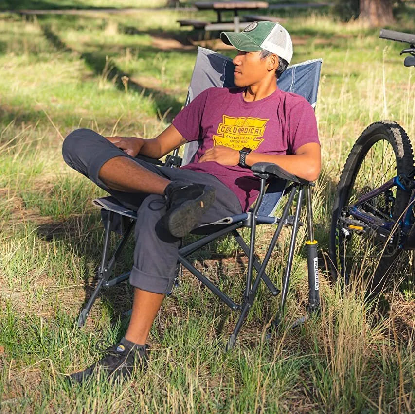 A camping rocking chair designed for the great outdoors! Easy to transport and set up, with smooth rocking on any surface, anywhere.