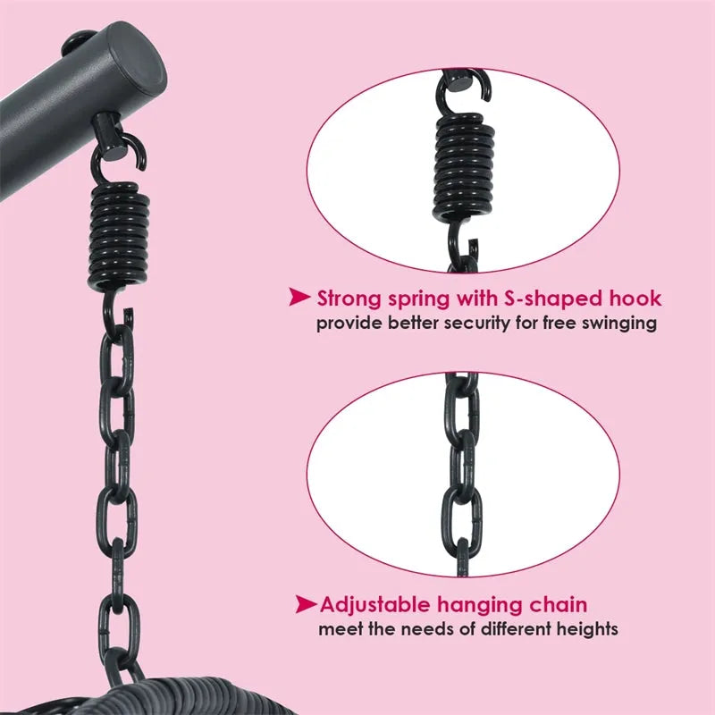 - Safe Device for Great Balance: A safety hook, durable hanging chain, and strengthened frame ensure the great balance of the hanging hammock chair. Plus, the chair is secured with a strap for increased safety. Therefore, you can spend joyful swinging time with its powerful function to enjoy the outdoor panoramic day sitting in the hammock chair.
