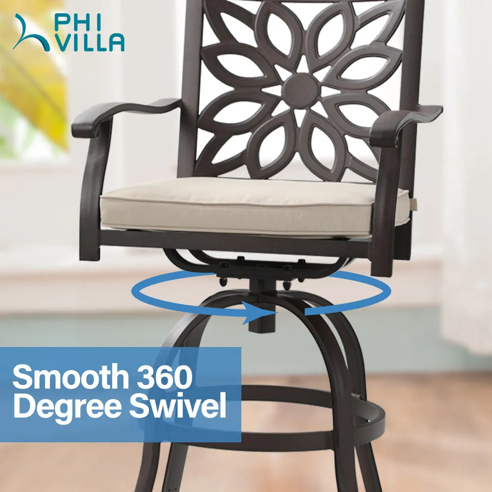 Cast Aluminum Patio Outdoor Pub Height Swivel Bistro Bar Stools Chairs & Table