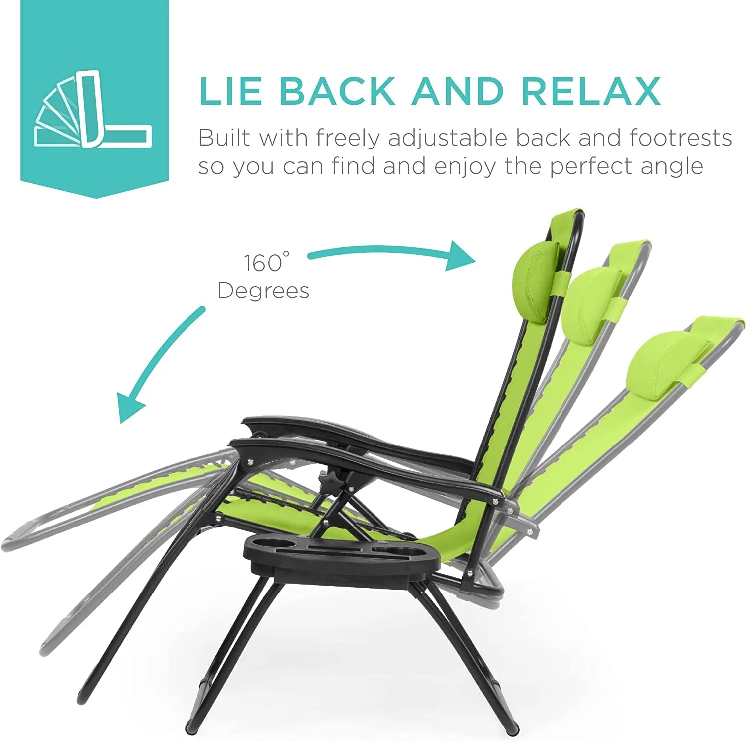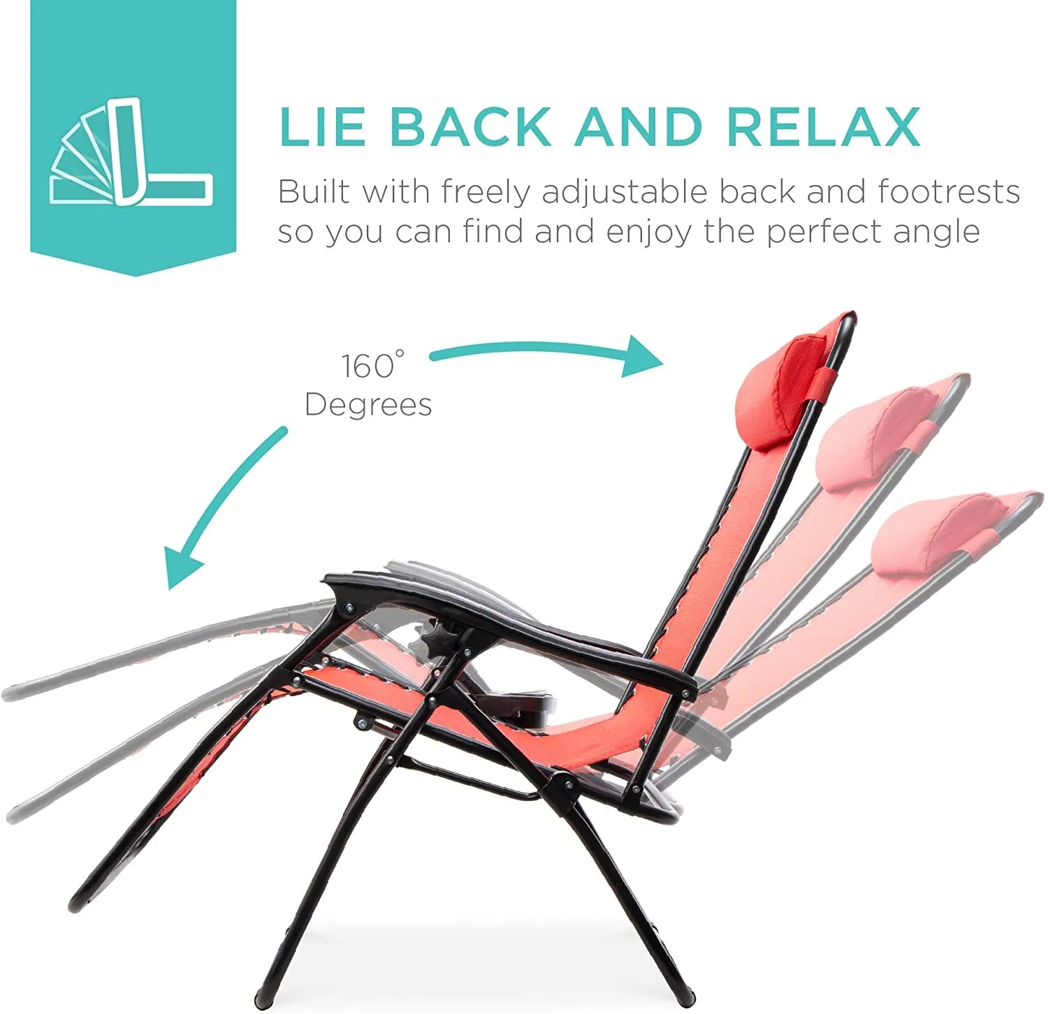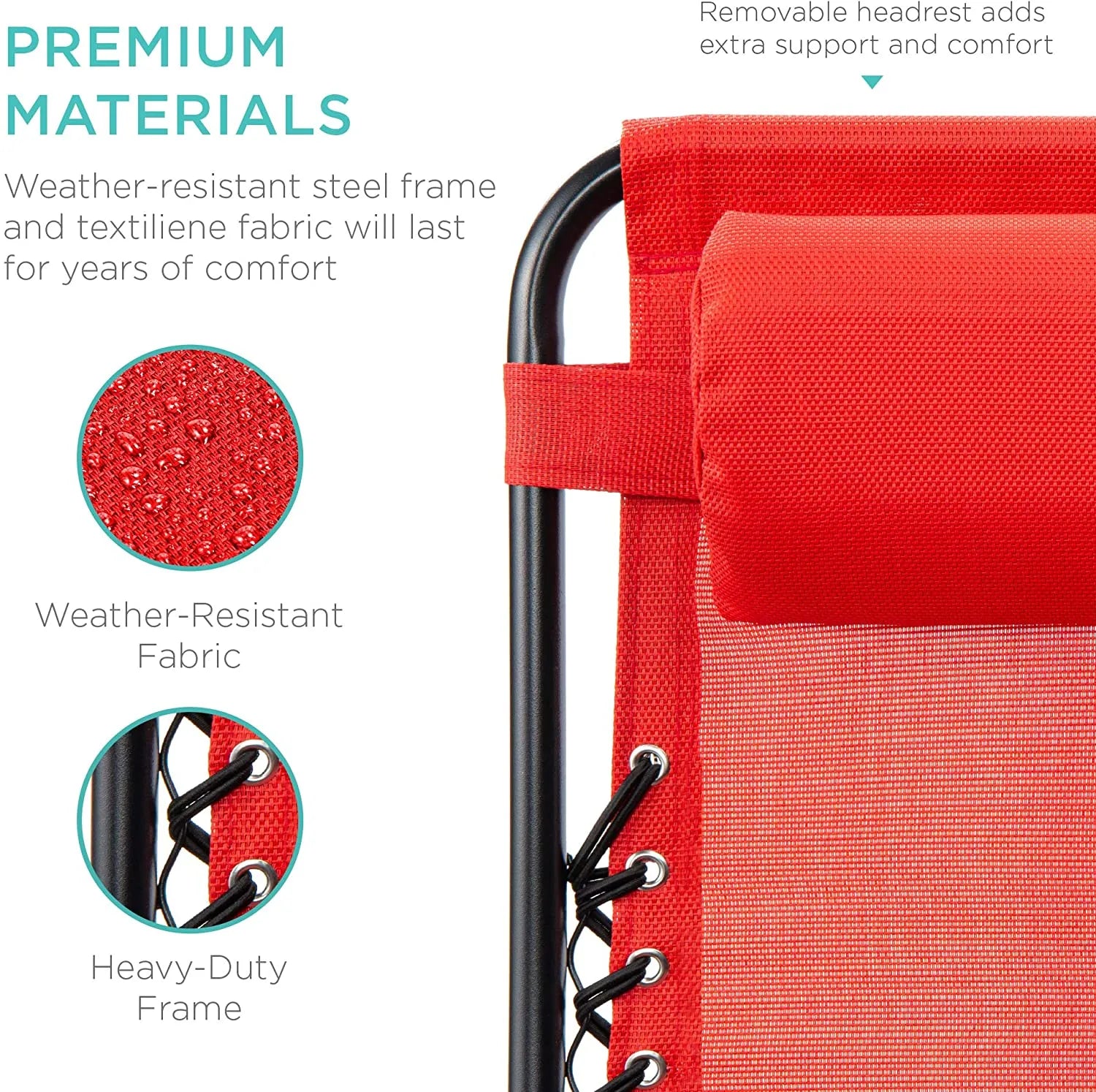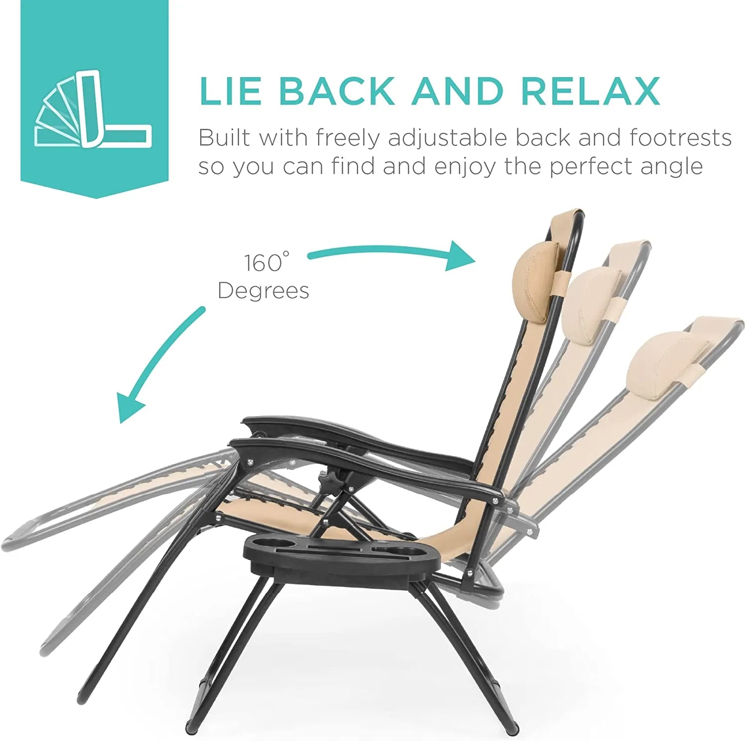 - REMOVABLE, ADJUSTABLE HEADRESTS: Includes a removable, padded headrest for an extra element of adjustable comfort; OPEN DIMENSIONS: 32.5"-61"(L) x 25"(W) x 33.5"-44"(H); FOLDED DIMENSIONS: 38"(L) x 25"(W) x 6"(H)