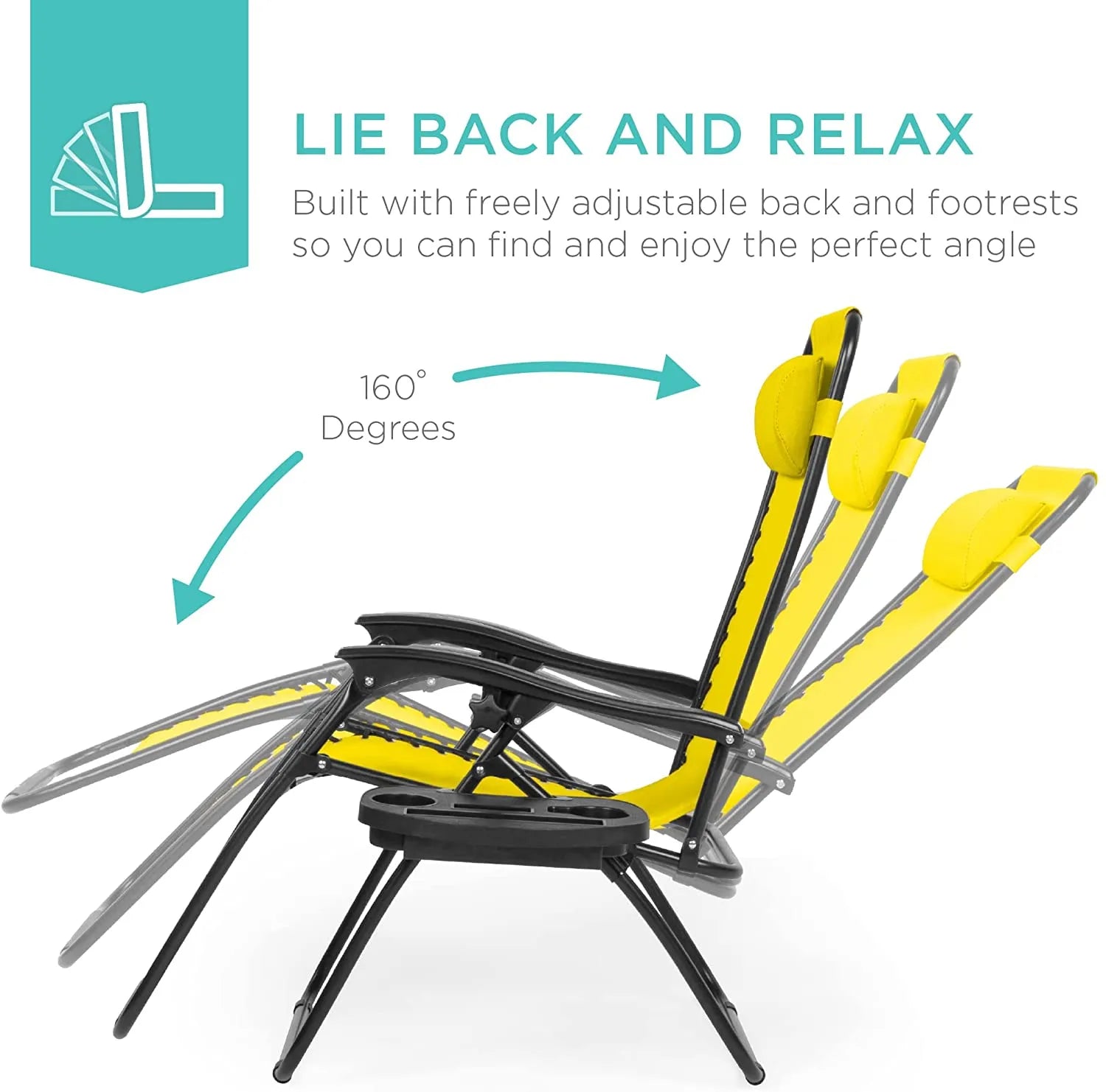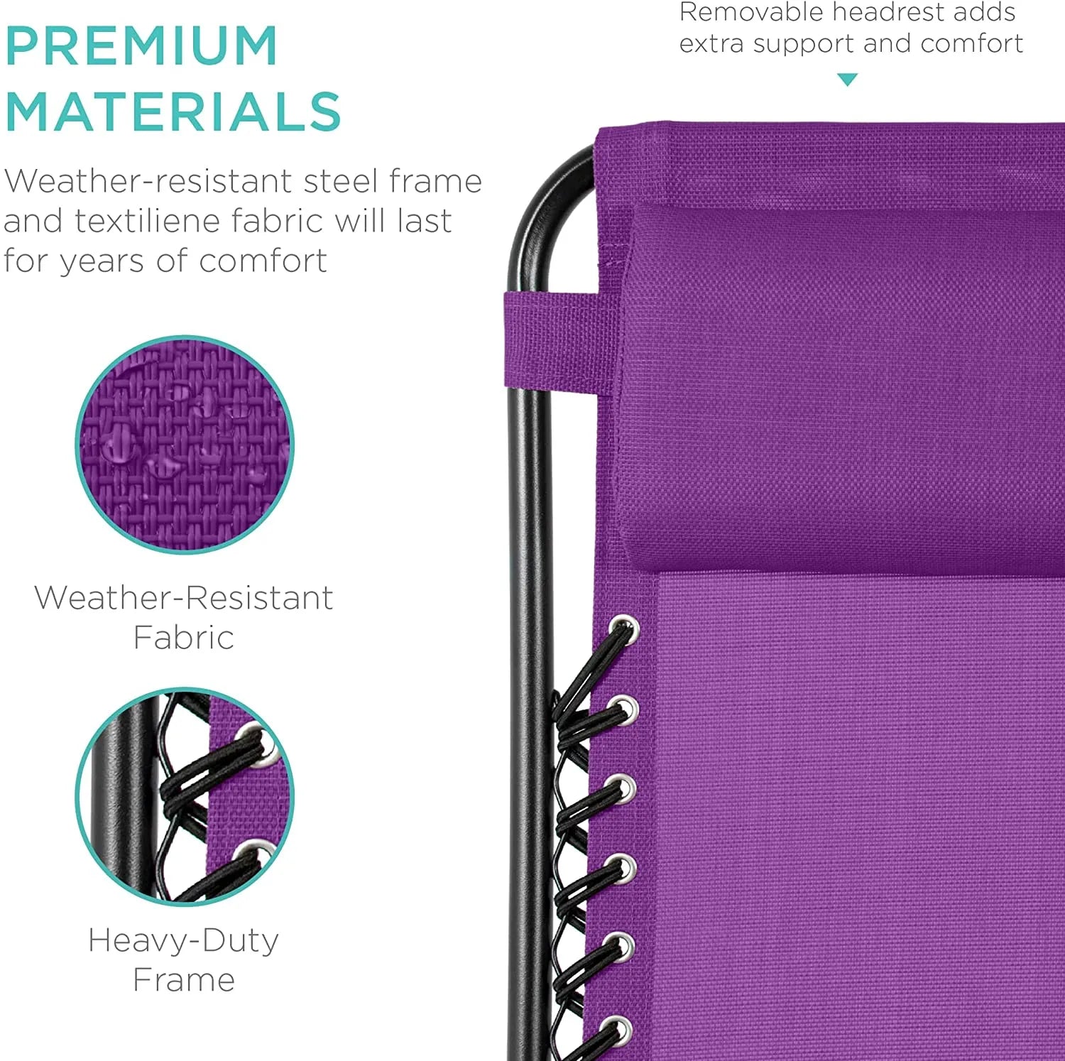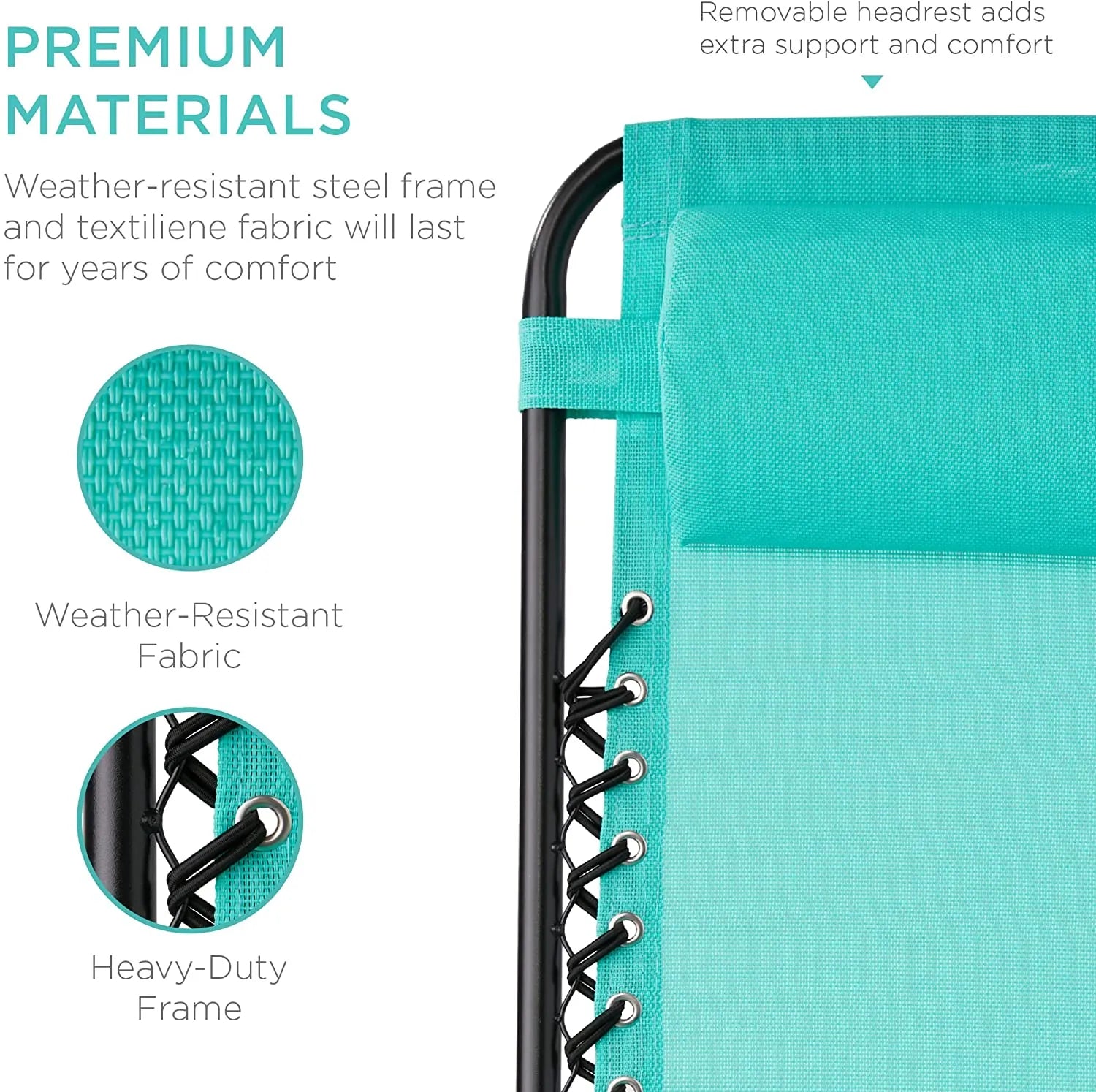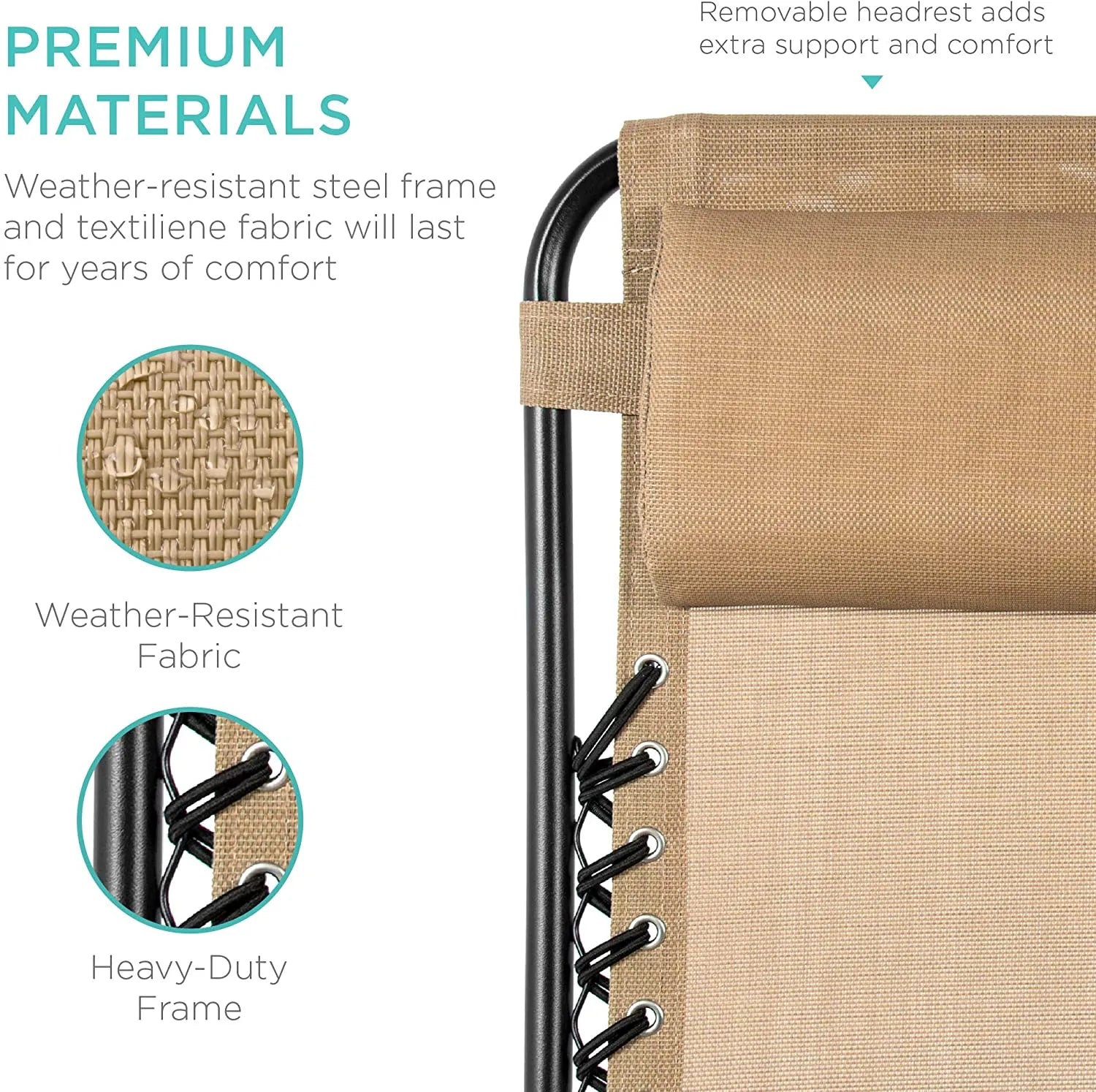 - REMOVABLE, ADJUSTABLE HEADRESTS: Includes a removable, padded headrest for an extra element of adjustable comfort; OPEN DIMENSIONS: 32.5"-61"(L) x 25"(W) x 33.5"-44"(H); FOLDED DIMENSIONS: 38"(L) x 25"(W) x 6"(H)
