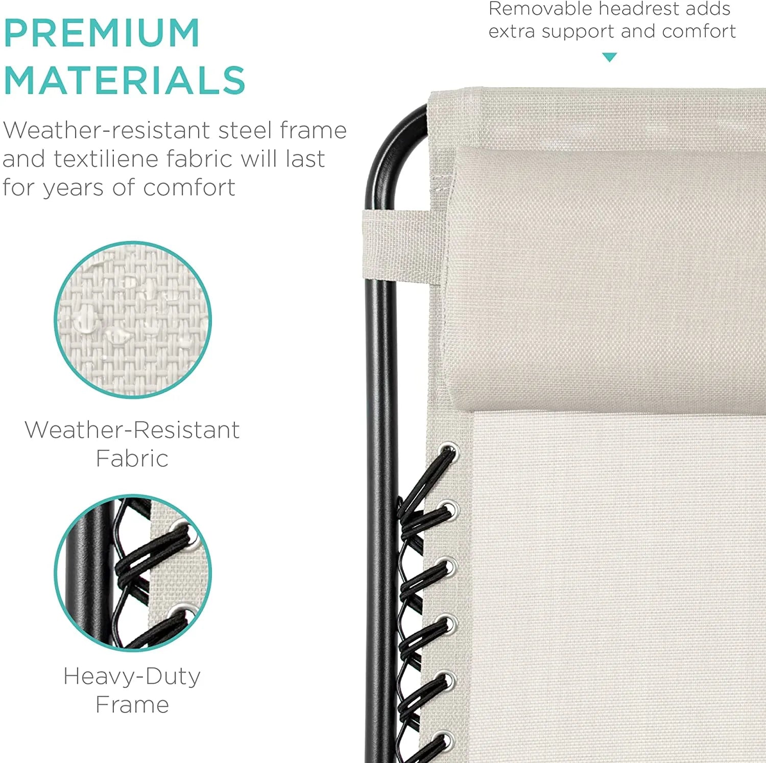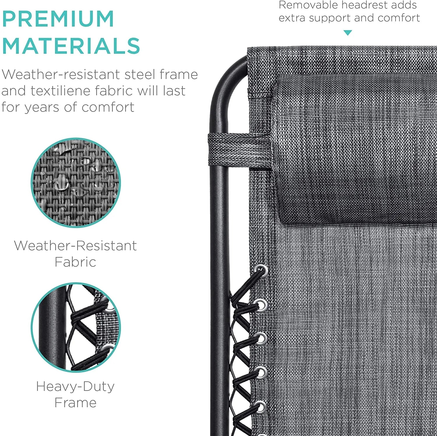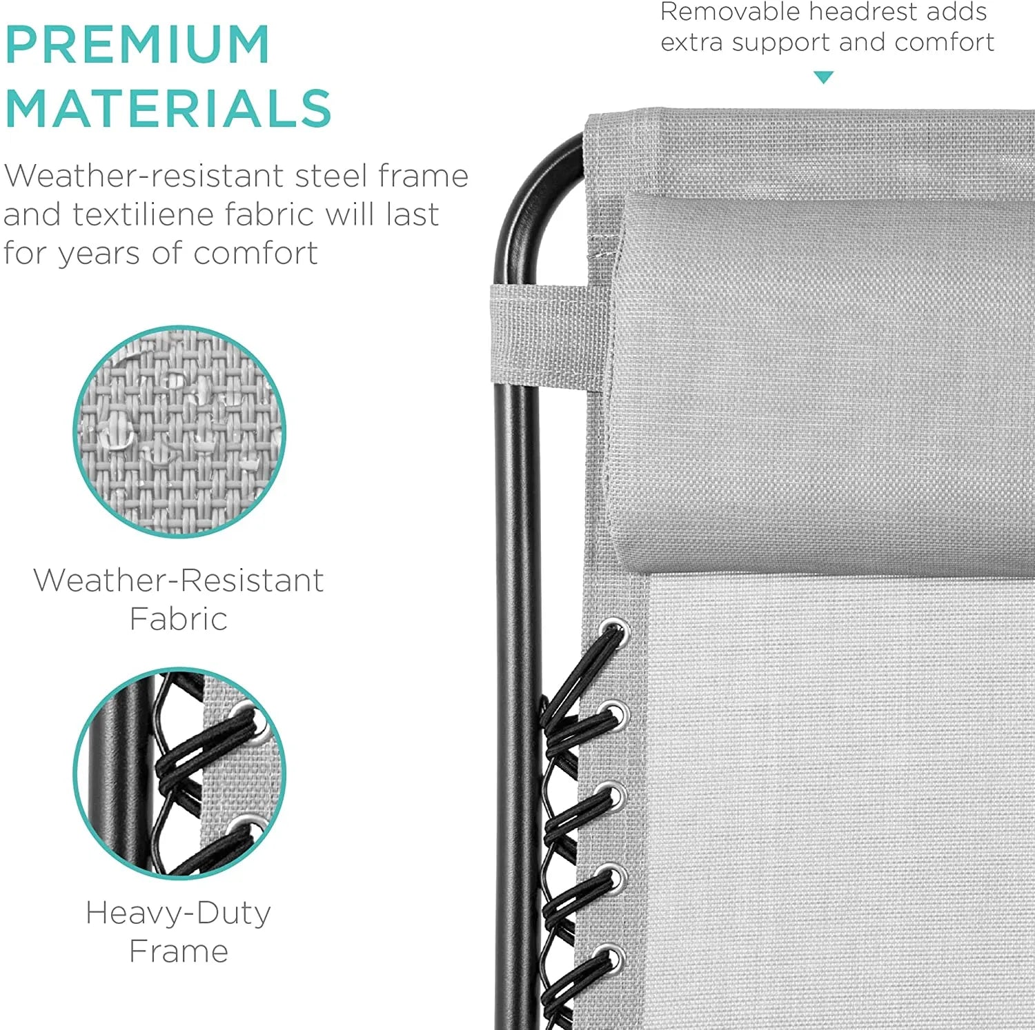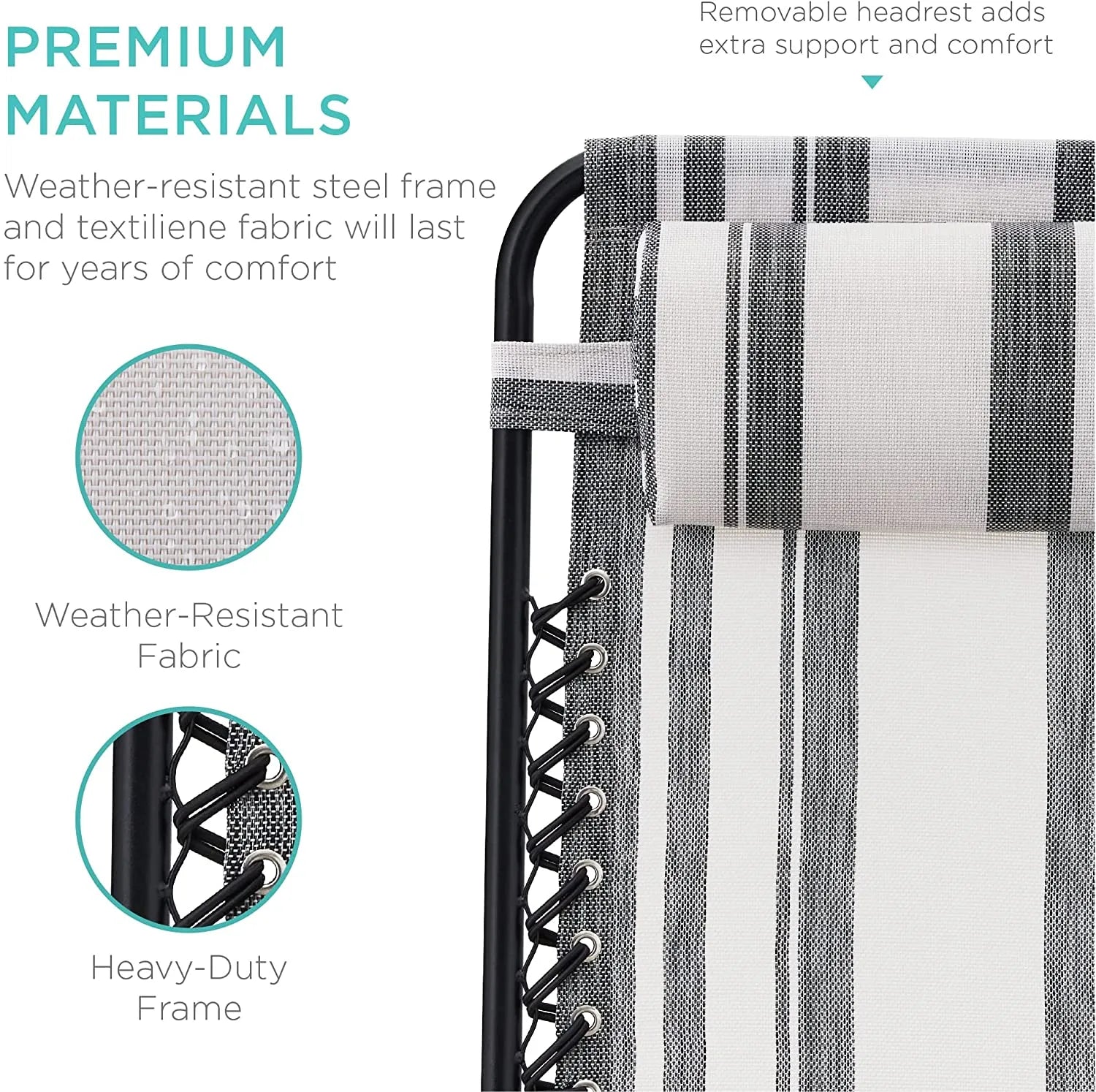 - LOCKABLE RECLINING SYSTEM: Smoothly glides into an ergonomic zero-gravity position, with removable elastic cords that immediately adjust to your body's weight