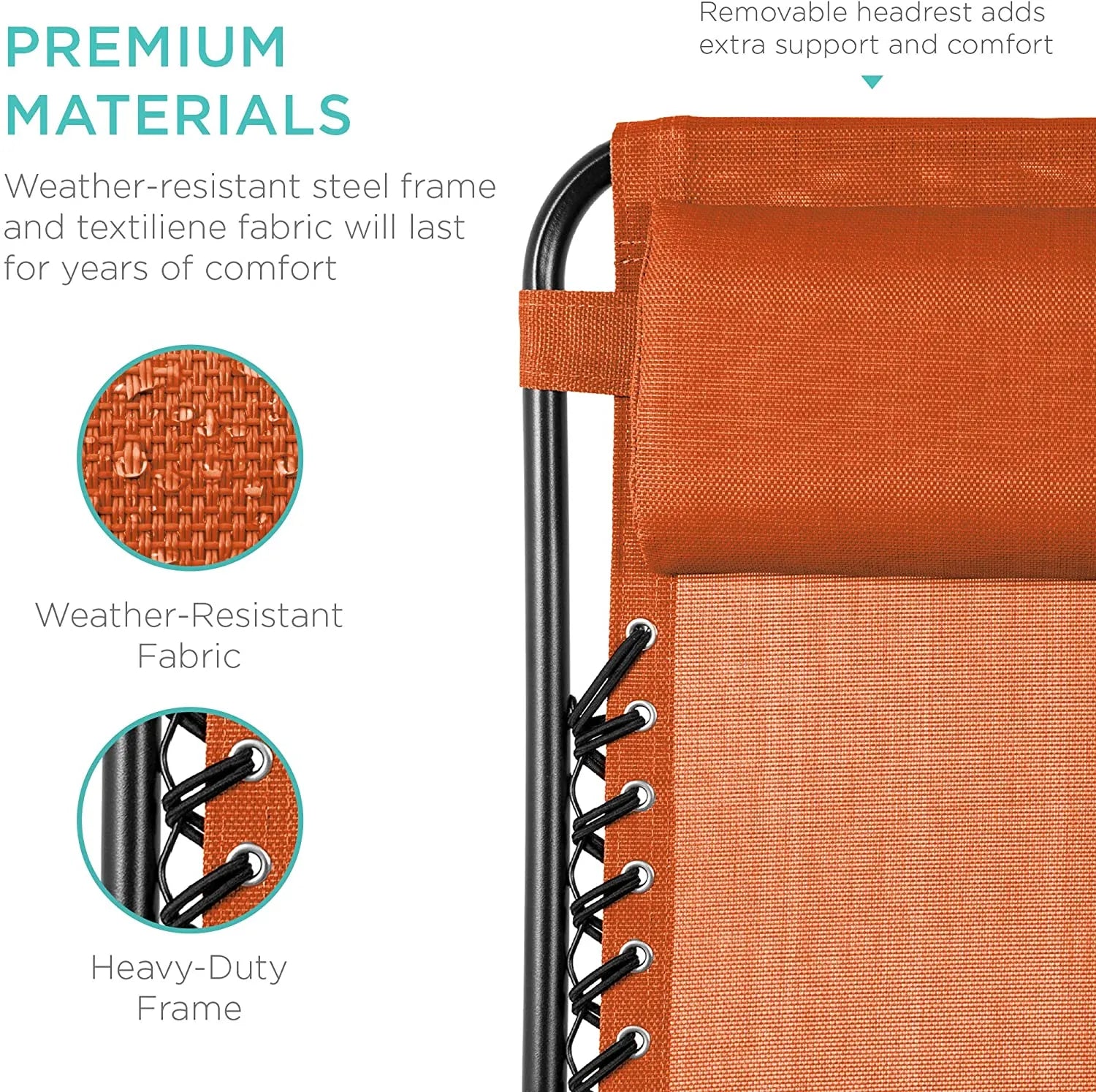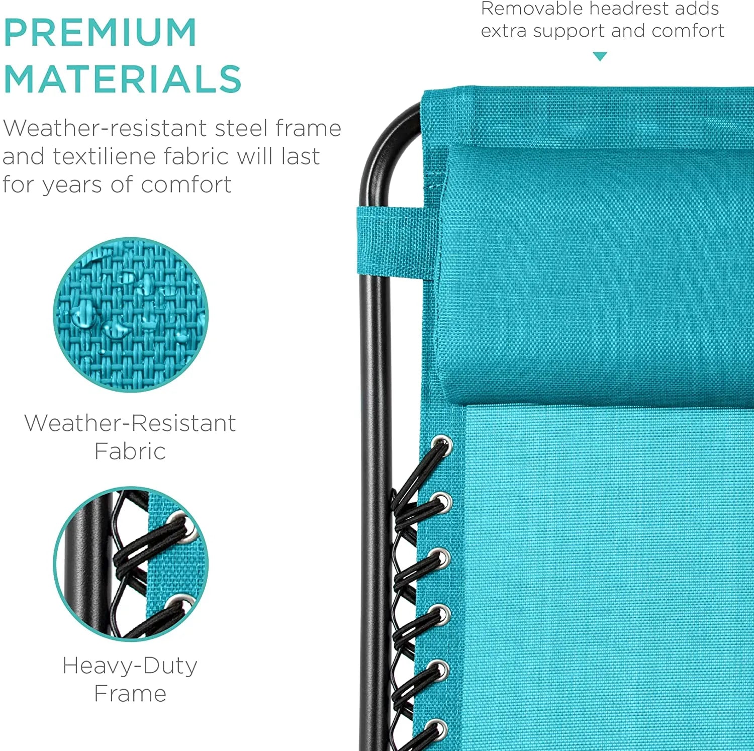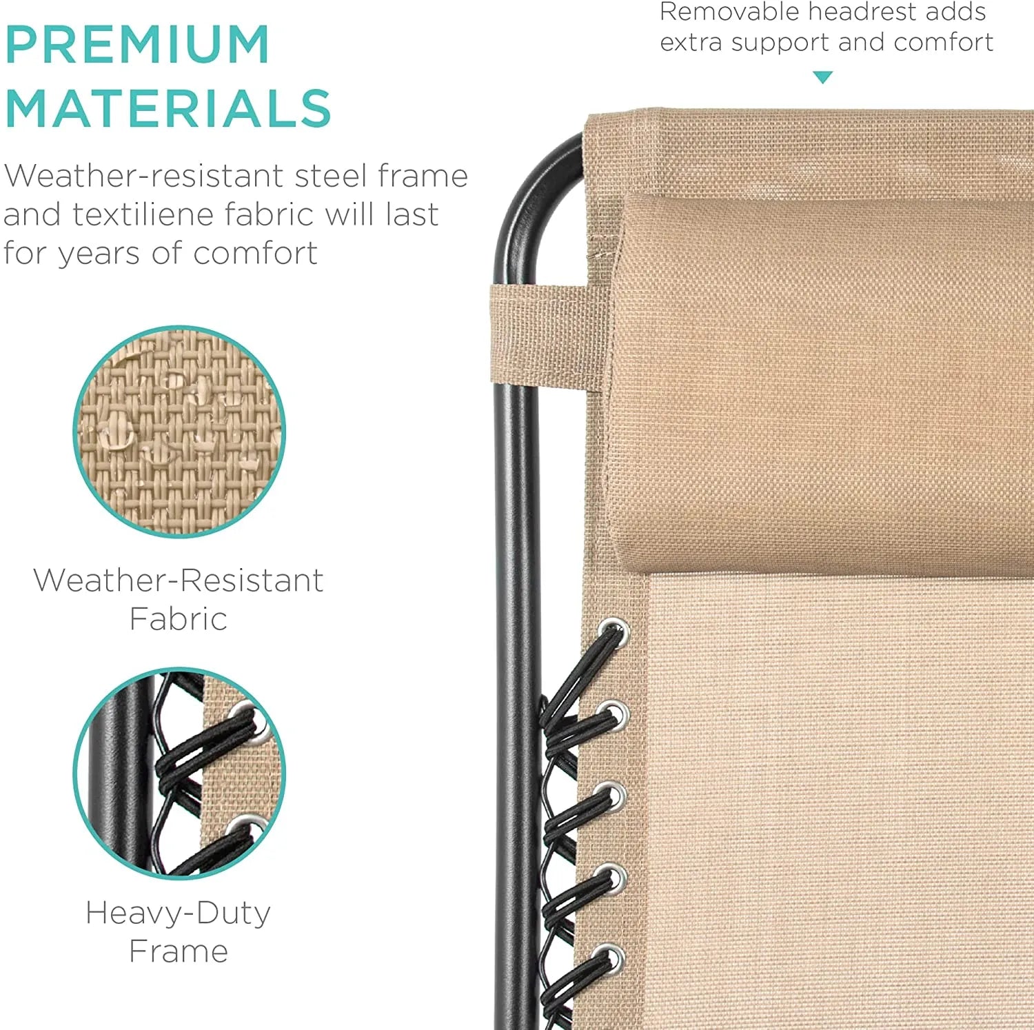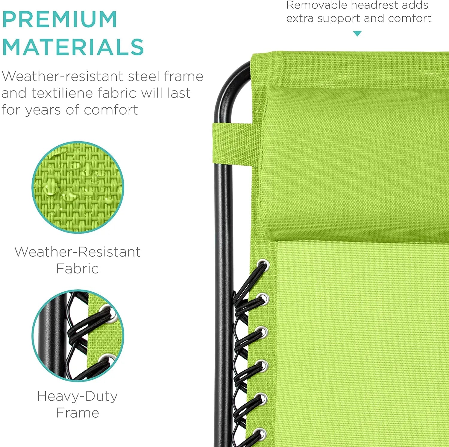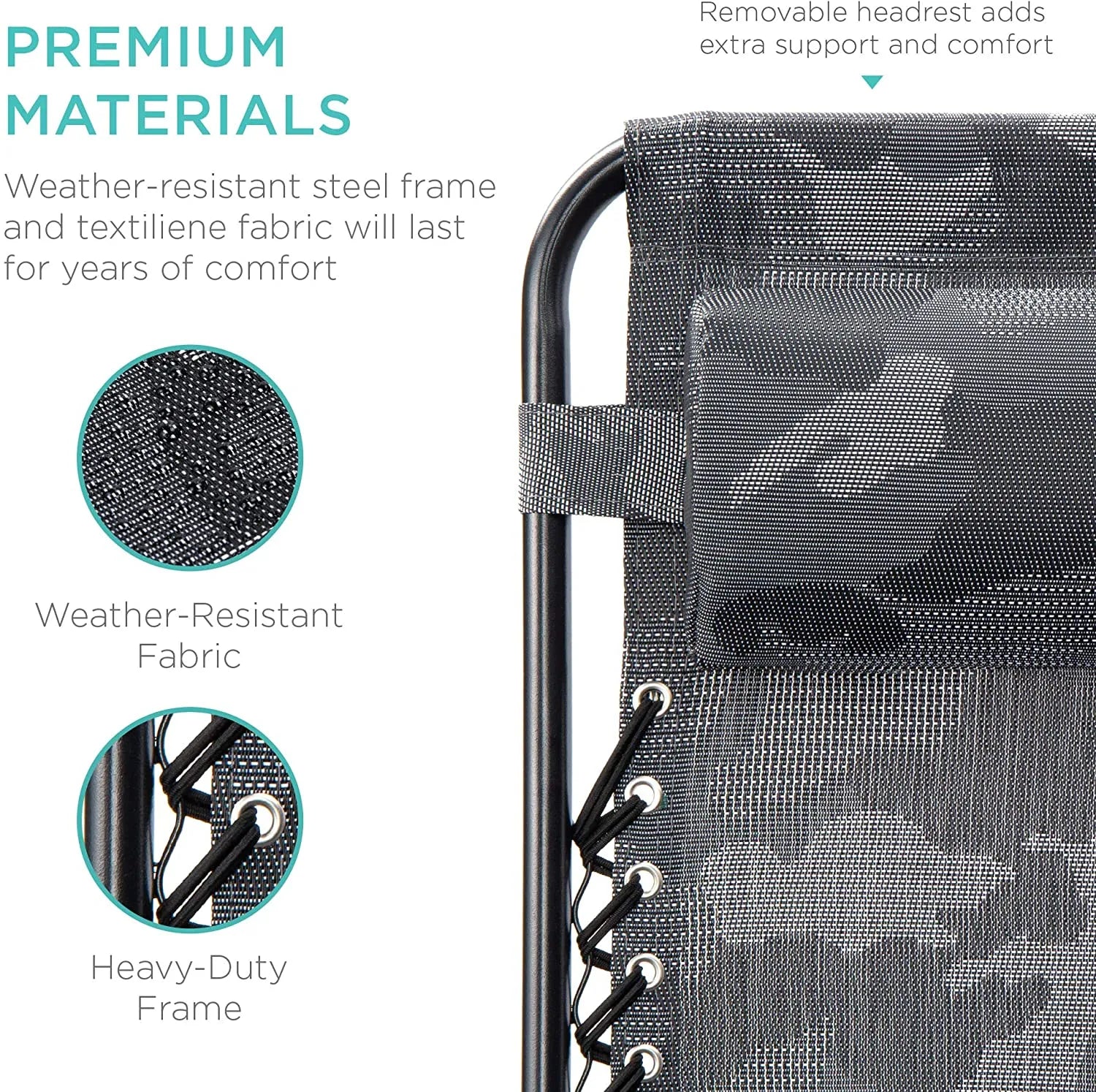 - LOCKABLE RECLINING SYSTEM: Smoothly glides into an ergonomic zero-gravity position, with removable elastic cords that immediately adjust to your body's weight