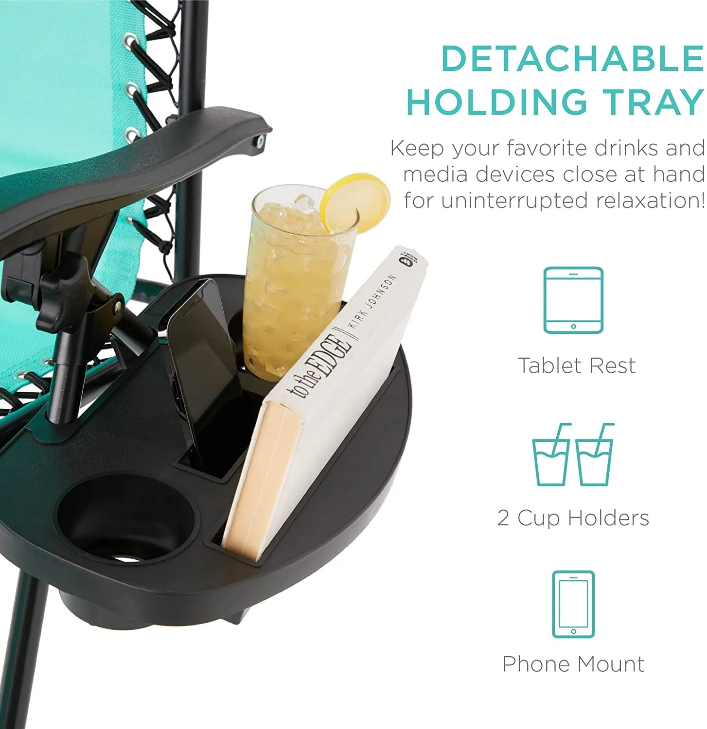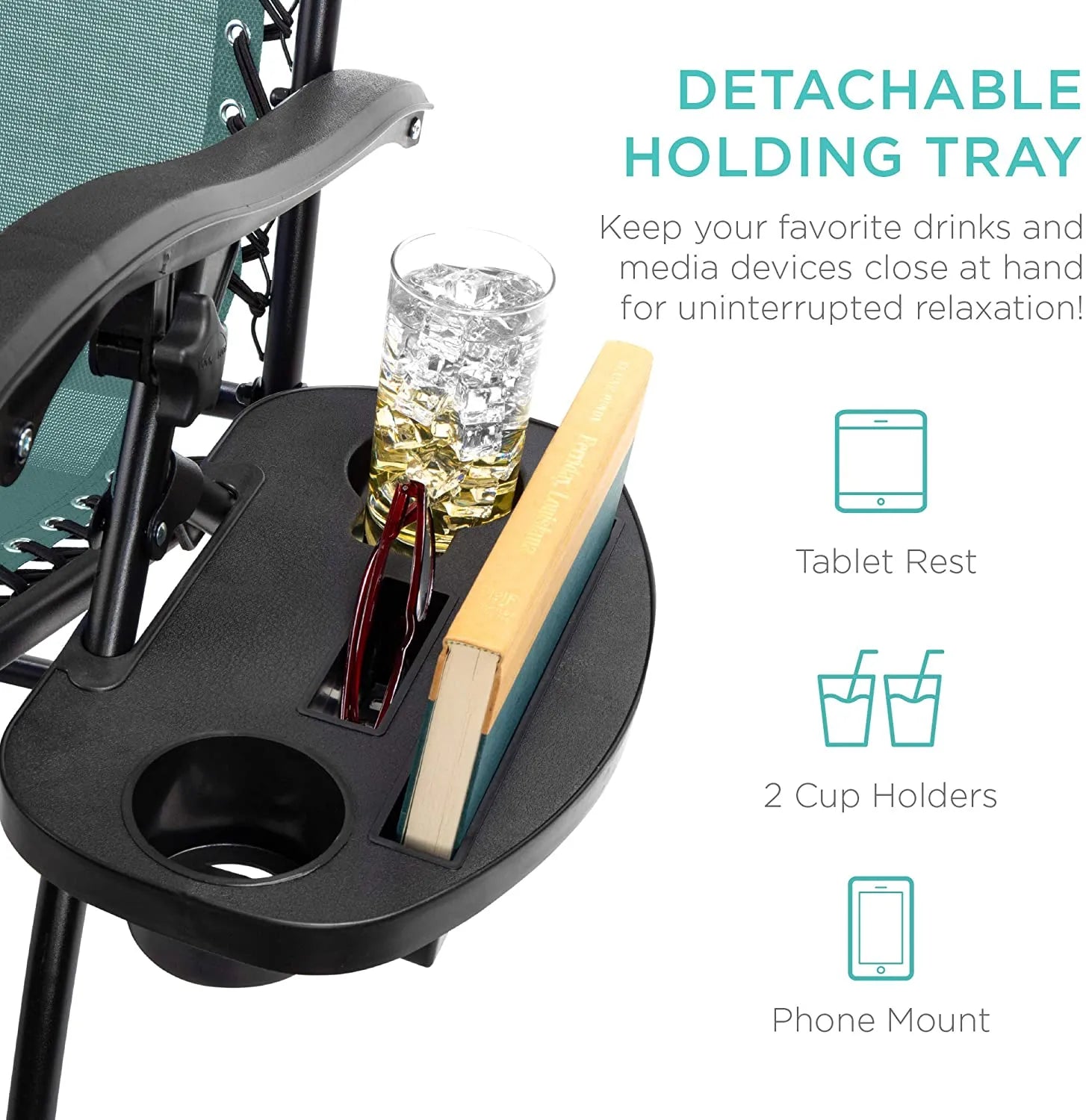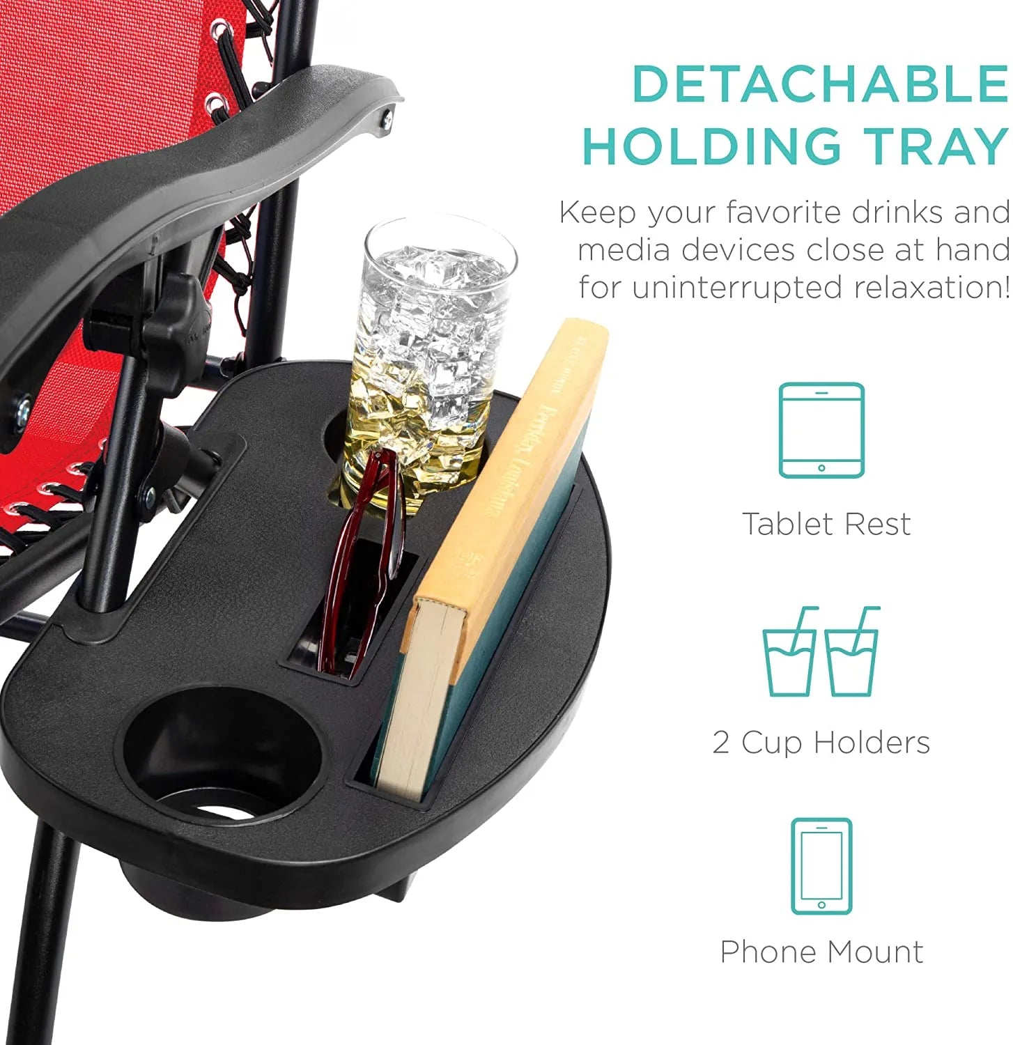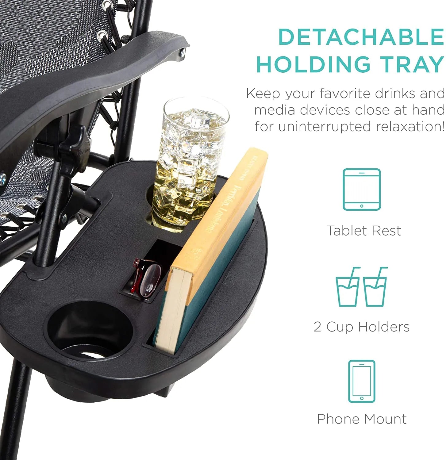 - CONVENIENT & DETACHABLE TRAY: Removable tray is built with two cup holders, a phone holder, and a tablet holder so you never have to be far from your favorite drinks or media devices!