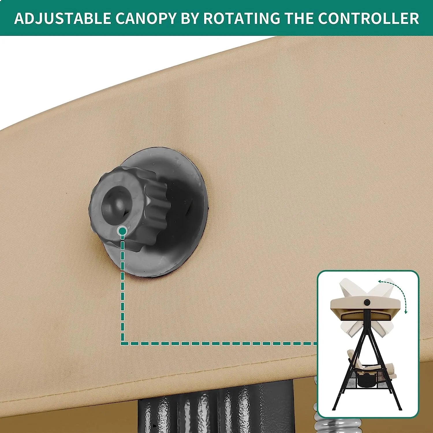 YITAHOME 3-Seat Deluxe Porch Swing Outdoor Heavy Duty Patio Swing Chair with Adjustable Canopy Removable Cushions Weather Resistant Steel Frame Suitable for Garden, Lawn, Backyard, Balcony, Brown